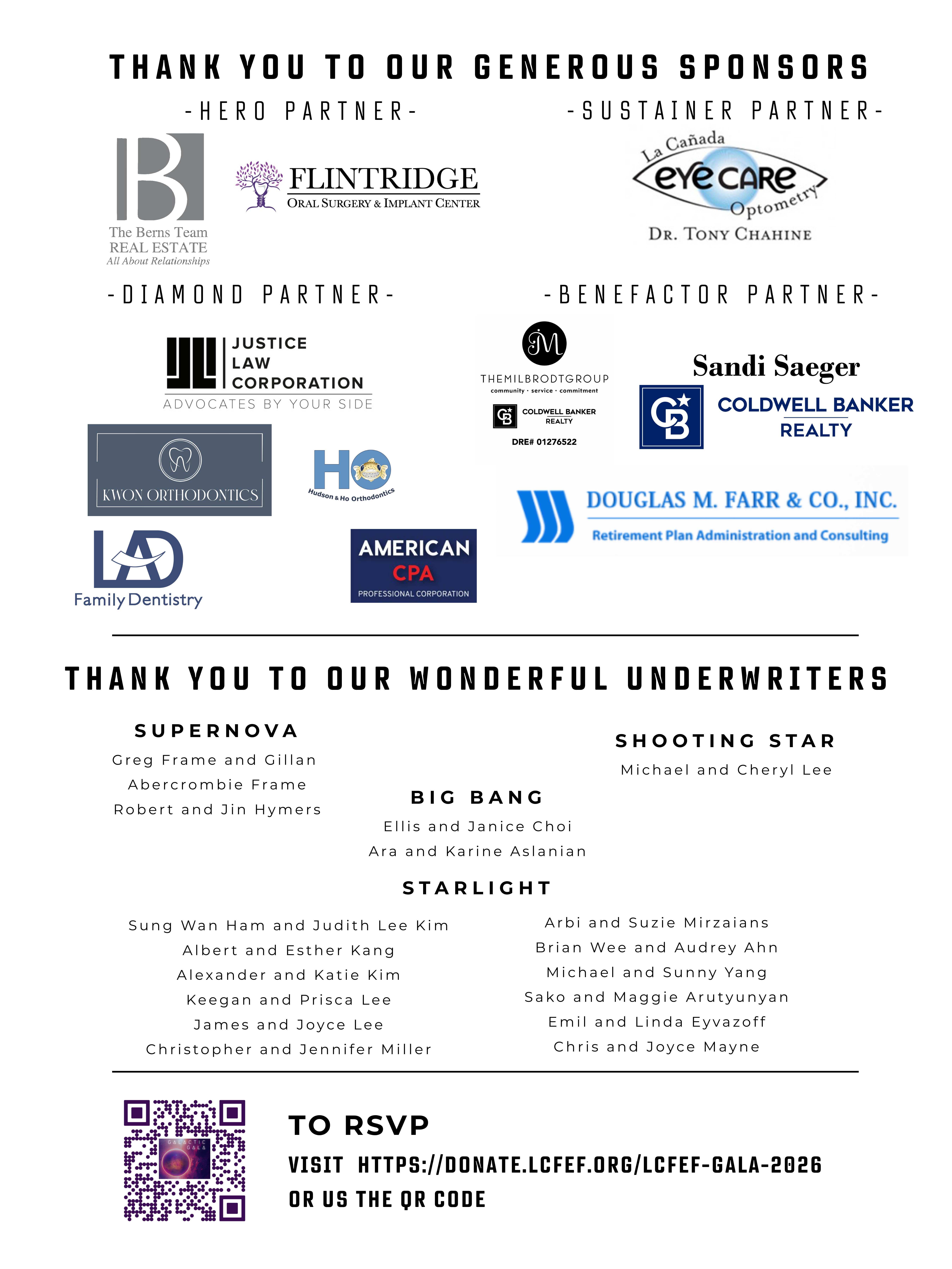 Underwriting opportunities are available now. Secure your table early and be part of La Cañada’s most anticipated night of the year, an evening of elegance, celebration, and community impact.